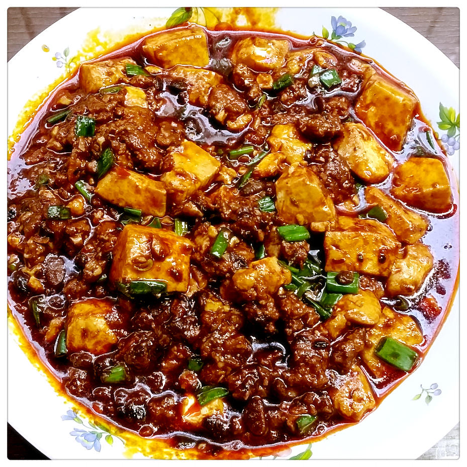 Mapo tofu is a popular Chinese dish from China’s Sichuan province. It consists of tofu set in a spicy chili and bean based sauce, typically a thin, oily, and bright red suspension, and often cooked with douchi (fermented black beans) and minced meat, usually pork.