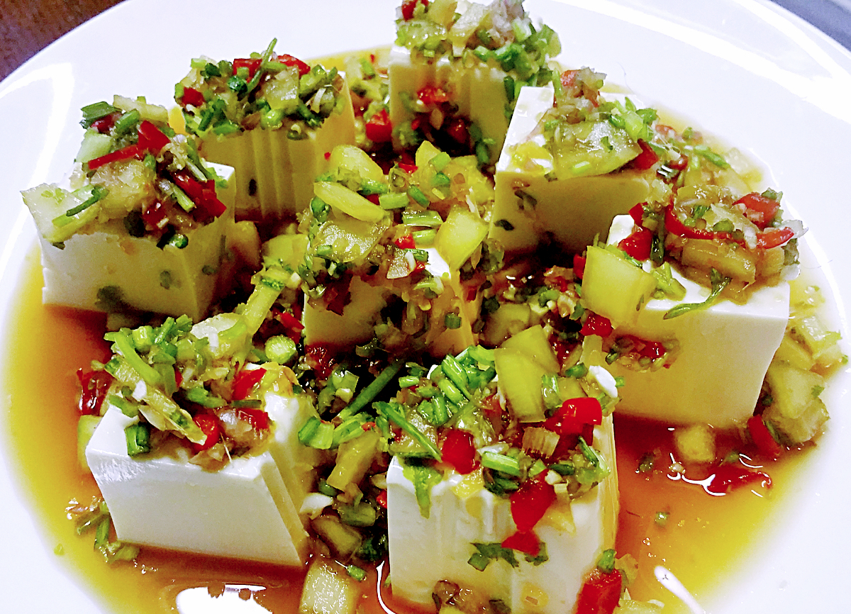 3. Spoon the sauce over each tofu cube, then pour the remaining dressing around the tofu. Serve on its own or with hot jasmine rice.