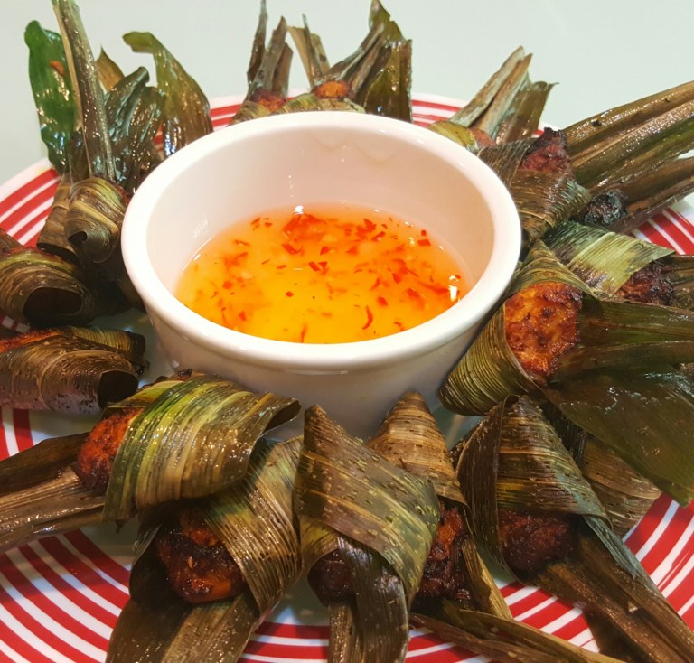 Today, I’m preparing Marinated chicken wrapped in pandan leaf and we fry them after. It’s a great finger food and goes well with Sweet Thai Chilli Sauce. I made the sauce myself as I could adjust the taste to my liking instead of the ready bottled type. You can try it out too just follow this link.