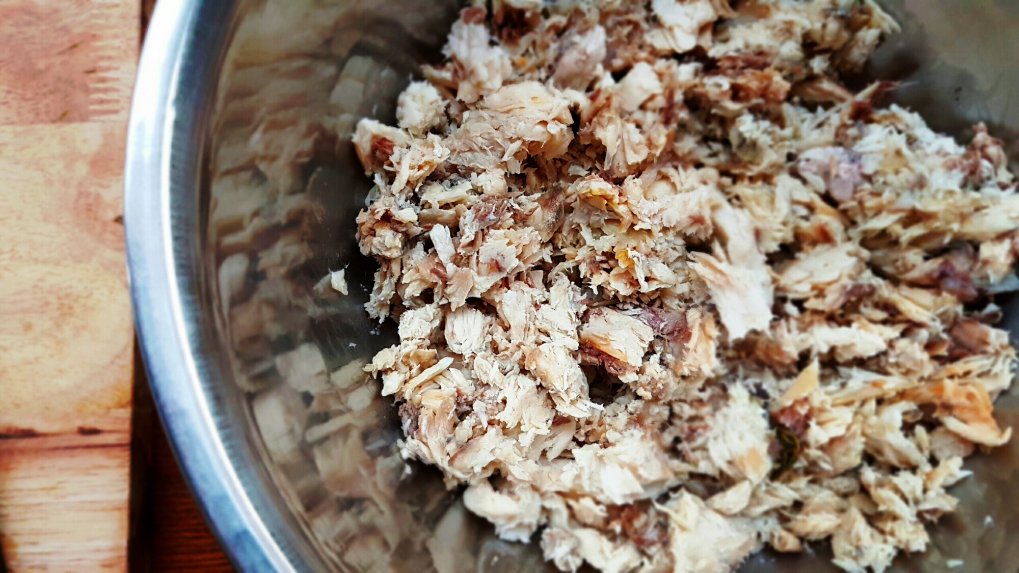 2. Use your hands to remove the fish heads, backbone and other bones. Break all the fish into bite sized chunks and put them in a bowl