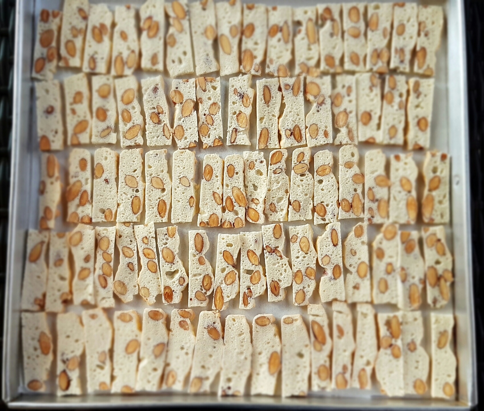 Biscotti is thin wafer liked italian biscuit. I think it is rather healthy as ingredients are mainly egg white and your preferred nuts. You can use walnut, pistachios etc. This recipe, we are using almonds.
