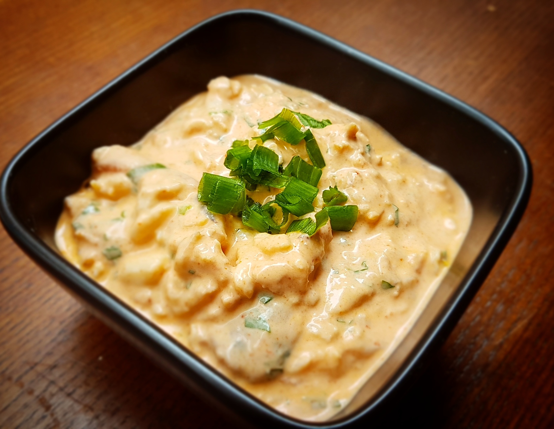I bought my crab meat raw. Melt some unsalted butter, throw in the raw crab meat and a simple stir on the skillet till cook. Left it in the refrigerator to cool while I prepare the Dip mix.
