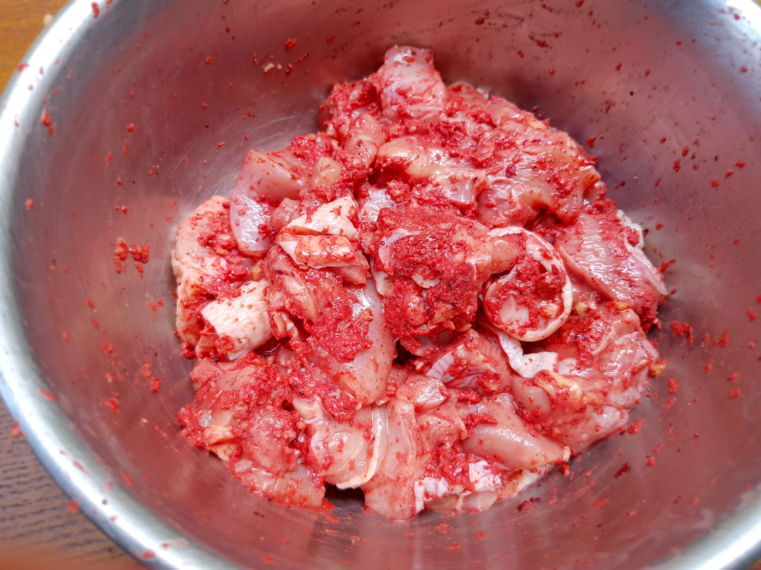 1. In a bowl, marinade chicken for half an hour – an hour.
