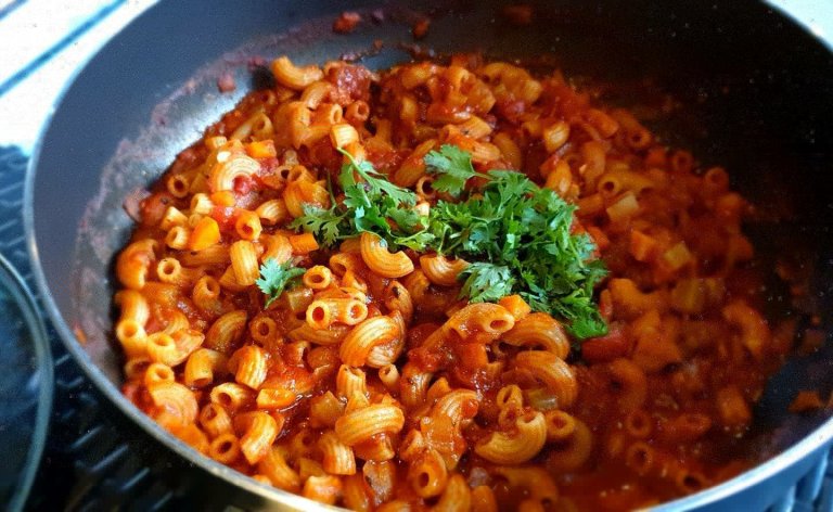 3. Bring back to a boil. Add macaroni, reduce heat to a simmer and cook for an additional 15-20 minutes uncovered or until pasta is al dente. Serve topped with chopped fresh parsley.